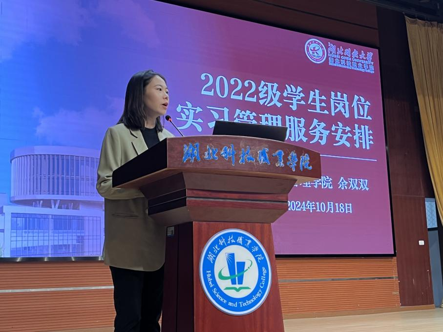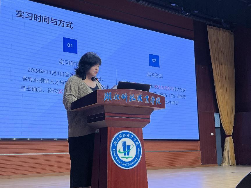 会上,学院副院长秦琴从实习要求、实习目标、实习流程、实习注意事项四个方面介绍了岗位实习安排,进一步强调了岗位实习在人才培养中的重要性。学工办负责老师重点强调了实习过程中的人身、财产和心理健康等安全问题。教务处、校企合作处副处长宋晓露向同学们强调了实习的重要性,提醒同学们保持积极的学习态度,严格遵守实习纪律和实习规定,重申了实习安全问题,并对同学们表达了殷切期望与诚挚的祝福。