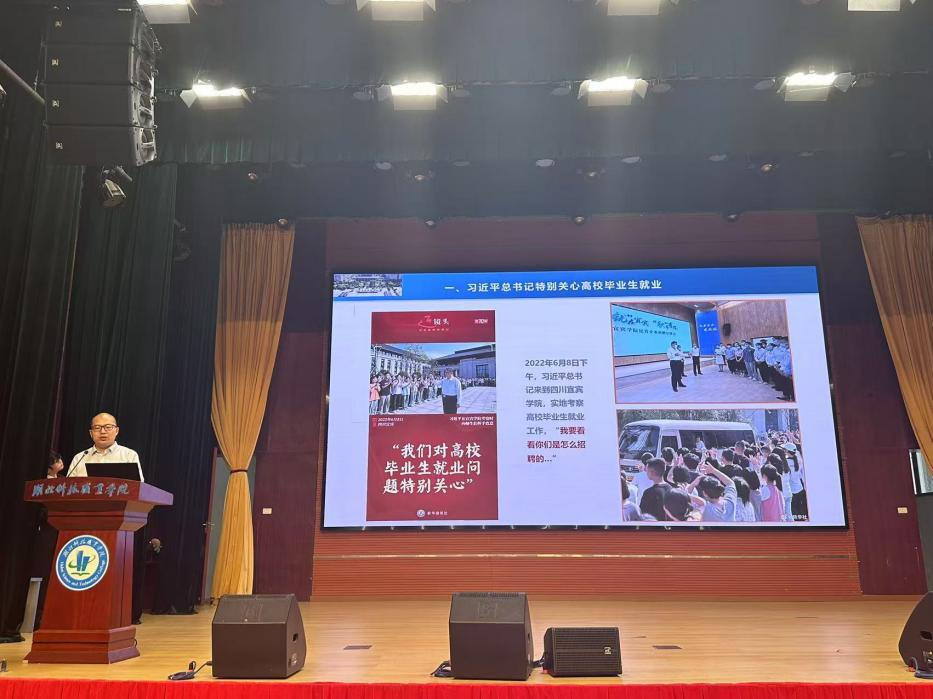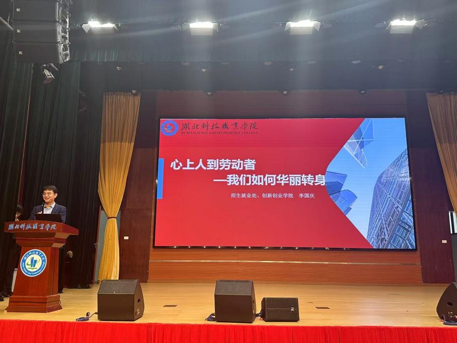 在就业启动会环节,学校招生就业处、创新创业学院副处长李国庆作就业辅导。他从难不难:积极应对面临的形势;怕不怕:始终充满破局的信心;实不实:行动铸就华丽的转身三个方面生动形象地讲述了当前大环境下的就业情况,切实举例分析,从就业大学生的实际能力、公司企业的人才需求等方面,为同学们提供了诸多有价值的建议,为同学们日后的就业提供了帮助。