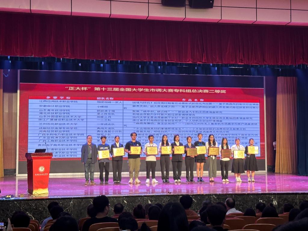 本网讯(通讯员 刘燕 文/图)5月19至21日,“正大杯”第十三届全国大学生市场调查与分析大赛(专科组)总决赛在芜湖举行。我校学生刘梦娇、向宵、肖亮、陶凯鹏(指导老师:刘燕、沈艳、李洁)组成的“星之所在”队获得全国二等奖的好成绩。