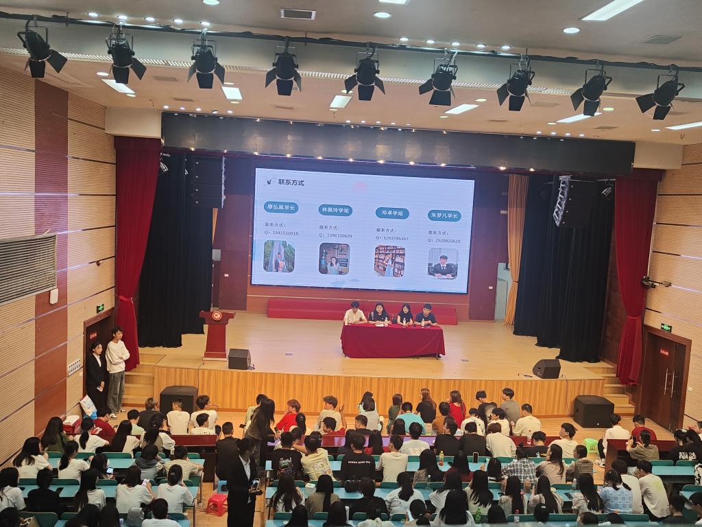 讲座交流分享环节,四位学长学姐依次分享了他们在专科学校与本科学校的个人经历以及备考专升本时悟出来的经验与方法并对在场的新生提出了一些小建议。