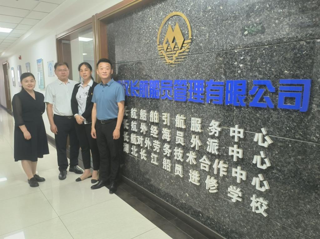 本网讯(通讯员 闫秦勤 文/图)9月13日,工商管理学院院长苏枫带领国际邮轮乘务管理专业负责人赴武汉长航船员管理有限公司开展访企拓岗调研,了解企业用人需求,洽谈校企合作事宜。武汉长航船员管理有限公司总经理李臻,副总经理蔡宏伟,海员外派船务中心总经理杨志,海员外派船务中心总船长石伟参加了本次调研活动。