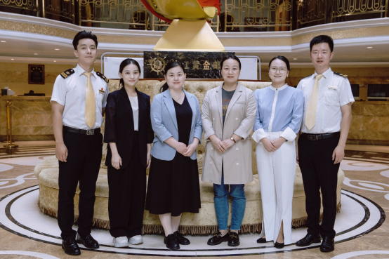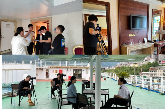 两位教师实地察看学生的工作环境与住宿条件,双方针对长江三峡内河游轮用人需求与校方人才培养方案的对接进行了深入探讨,校企双方希望能够从专业建设、课程建设、订单培养等多方面加强合作,发挥各自优势培养更多优秀邮轮人才。在张东隅部长的鼎力支持下,“黄金3号”和“黄金7号”两艘游轮的工作人员积极配合,顺利完成了游轮整体概况和客房部主要房型介绍、客房服务员清洁操作流程、游轮公共区域清洁、客房部管理层解读岗位职责和分享典型工作案例等实景拍摄工作,极大丰富了《邮轮客舱服务与管理》省级精品在线开放课程的优质教学资源。