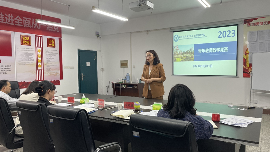 本网讯(通讯员 王李/文 宋威/图)为大力弘扬劳模精神、劳动精神和工匠精神,激发学校青年教师更新教育理念和创新教学方法,进一步提高青年教师的教学水平和业务素质,按照学校总体安排,10月11日下午,工商管理学院组织了青年教师教学能力竞赛院赛,全院专任教师全程观看了比赛。