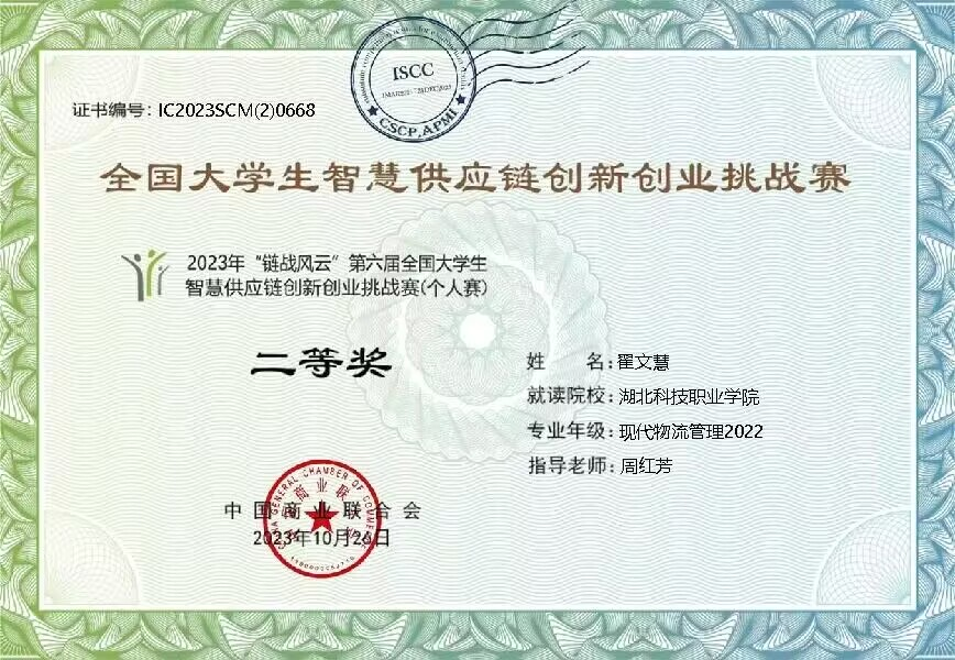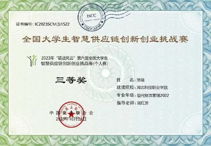 本网讯(通讯员 周红芳 文/图)10月22日,2023年“链战风云”第六届全国大学生智慧供应链创新创业挑战赛(个人赛)在线上举行。该赛事分团体赛和个人赛,团体赛于已于今年5月举办。个人赛于今年9月份正式启动。工商管理学院现代物流管理专业三名学生参与竞赛,最终取得了全国二等奖2项和三等奖1项的好成绩。