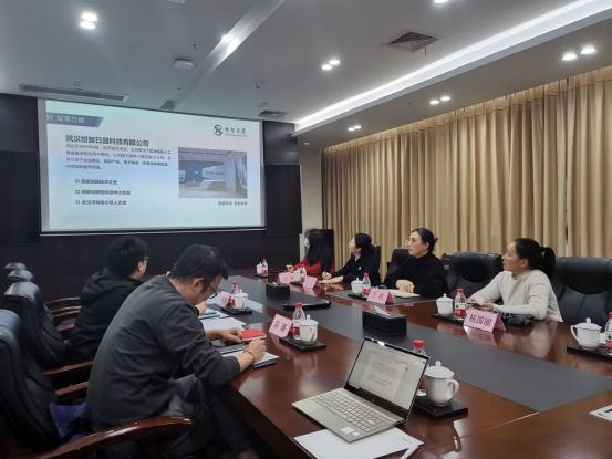 本网讯(通讯员 苏枫 文/图)12月7日,工商管理学院院长苏枫带领专业教师团队赴武汉恒智日晟科技有限公司走访调研,与恒智日晟科技有限公司董事长秦家明、联合创始人陈璐、行政经理毕立苑等进行座谈交流。