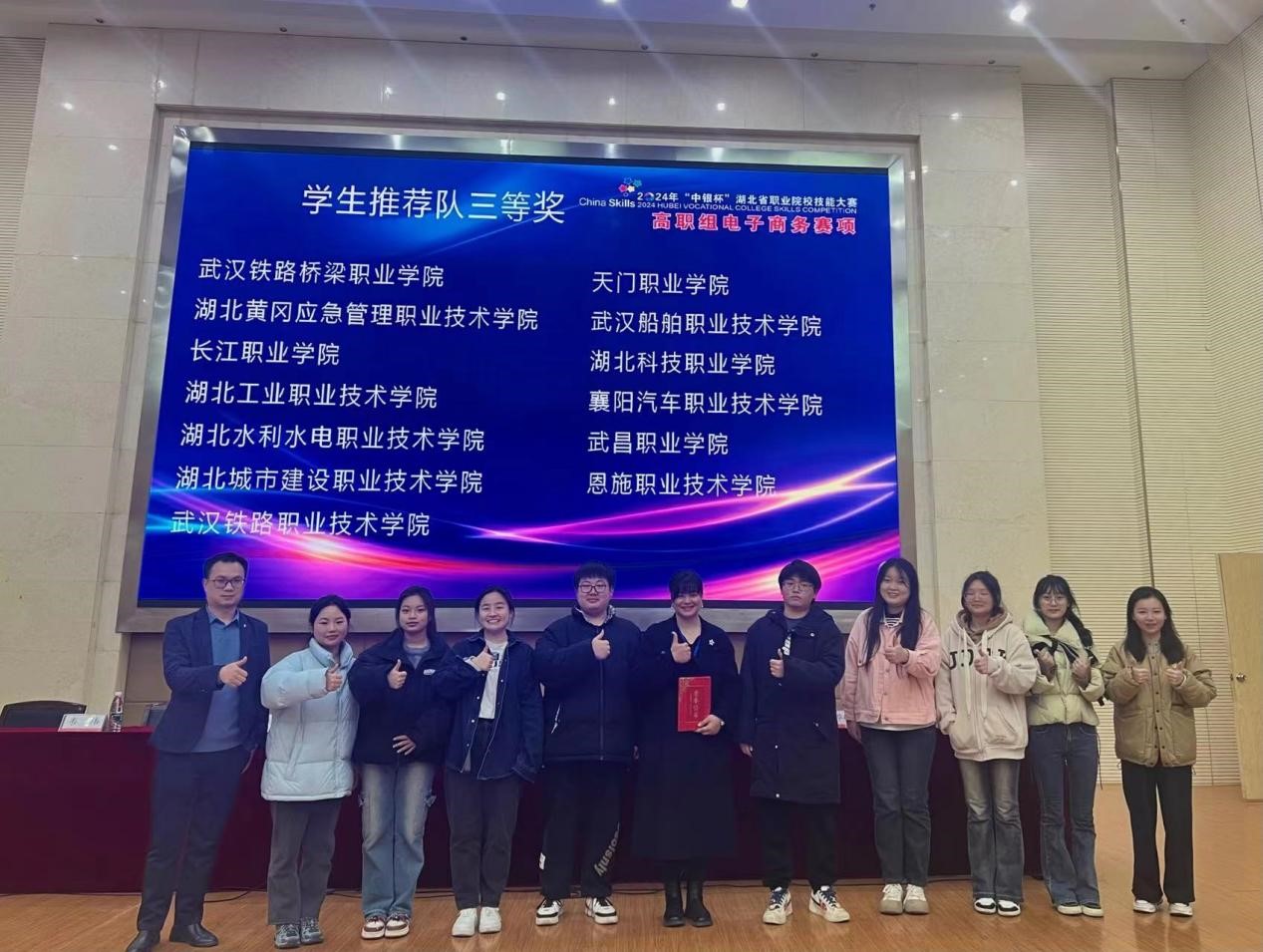 此次比赛中,我院2022级电子商务专业谭滇、任婧、曹佳、张芷怡4位同学组成推荐组参赛团队,在胡婧、张华两位老师悉心指导下,面对紧张激烈的赛程和实力强劲的对手,凝心聚力、奋勇争先,获得团体三等奖。