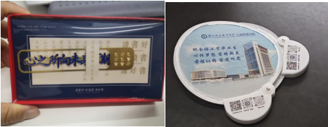 离校当天,学院继续实行“一站式离校服务”,考虑到已就业同学的时间诉求,早上七点工作人员就已全部就位,所有流程集中办理,从收取毕业生登记表到扫码确认再到发放毕业证和毕业礼物全程用时不到一分钟,整个办理流程有序、快捷而温馨。除了暖心的服务,从学校定制的U盘钥匙扣、点心礼包到学院定制的毕业寄语书签、折扇等各色礼物被同学们纷纷点赞。