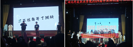 一场秀,一支舞,一首歌,毕业晚会上工商管理学院将中国传统文化与现代舞蹈、RAP串烧相融合,为全体毕业生带来了一场毕业“大戏”。表演从一场旗袍秀拉开帷幕,展现工商管理学院的专业特点和“礼韵工管”的学院品牌特色,随后的舞蹈《New Boy》和“湖科版”说唱《飘向北方》道出了对青春院校的不舍告别和走入社会的踌躇满志。大屏幕上不断滚动着学生从入学报到、军训汇演、参加技能竞赛、文体活动、毕业照拍摄等场景,一波“回忆杀”带大家重温了难忘的湖科岁月,让人热泪盈眶。