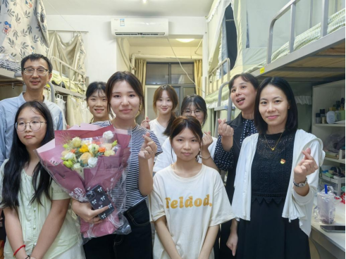 入学当天是2024级电子商务专业新疆籍学生古再丽努尔·买克木提的19岁生日,学院提前准备,不仅为她送上了大礼包,学院院长苏枫、学工办主任及辅导员还走访宿舍,为她送上了鲜花,共同庆祝其生日。