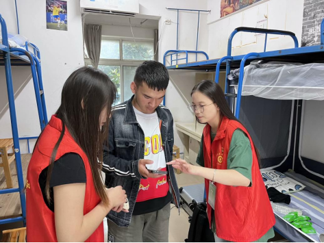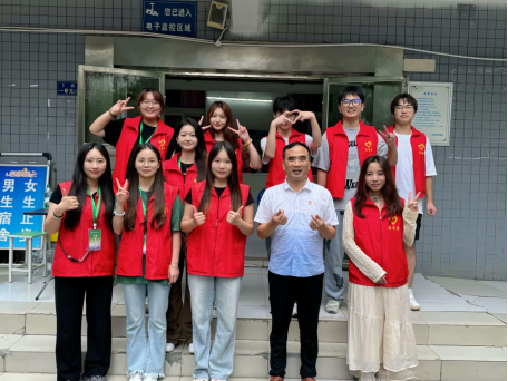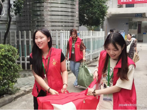 “同学,你是一个人来的吗,我帮你拿行李吧。”“走,我带你到宿舍去。”在迎新现场,学院“红马甲”志愿者忙碌的身影随处可见。从校门口的第一声问候、报到点的信息登记、路上帮助肩扛行李、到宿舍楼前的“党员服务岗”,每一个灿烂的笑脸,都充满着热情与欢迎,全程一对一服务,将新生送到“家”。尽管当天时有小雨,红马甲志愿者们依然坚守岗位,热情依旧。
