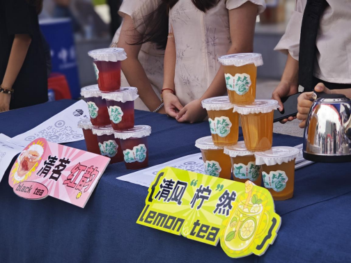“这是什么饮料,颜值好高。”“您可以来一杯我们的特调茶饮,解解暑。”上午,“工管新生特调茶饮”牌前挤满了人。这是学院“沁秋”茶酒社联合学院创新创业基地“麦芽糖”为新生及家长现场调制的专属特饮。两款茶饮的原料和取名更是与廉洁元素相结合,第一款清风“柠”然柠檬茶,以柠檬为主基调、红茶为茶基相互交融,加入薄荷,为奔波而来的新生及家长带来一波清凉;另一款清茗红韵双花茶,以洛神花为主色调,融合绿茶,上面用蝶豆花做分层,口感香甜,茶香扑鼻。此次调茶展示不仅与专业相结合、与学院清廉校园建设品牌“清风工管”相结合,也为广大师生带来了视觉与味觉的双重体验。