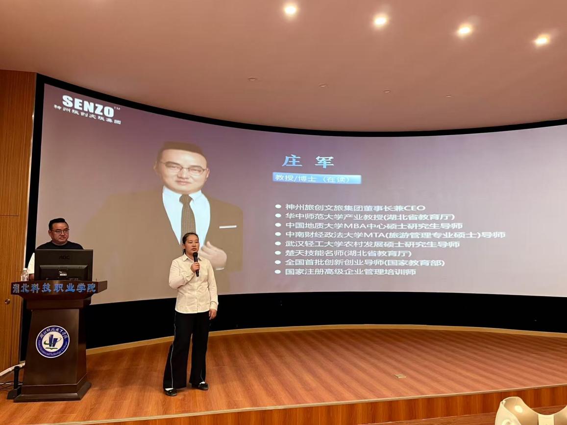 本网讯(通讯员 杨国丽/文 余怡娟/图)4月10日下午,湖北科技职业学院工商管理学院在6108实训室举办了“AI赋能专业发展”专题讲座。为了培养同学们对接酒店行业的创新能力,提供宝贵的行业洞察和学习机会,邮轮旅游教研室酒店管理与数字化运营专业教学团队邀请教育部创新创业导师、湖北产业教授、武汉神州旅创文旅集团董事长庄军为2024级酒店管理与数字化运营专业学生开展了一场以《AI浪潮下:酒店管理与数字化运营专业学子的破茧之路》为主题的讲座。