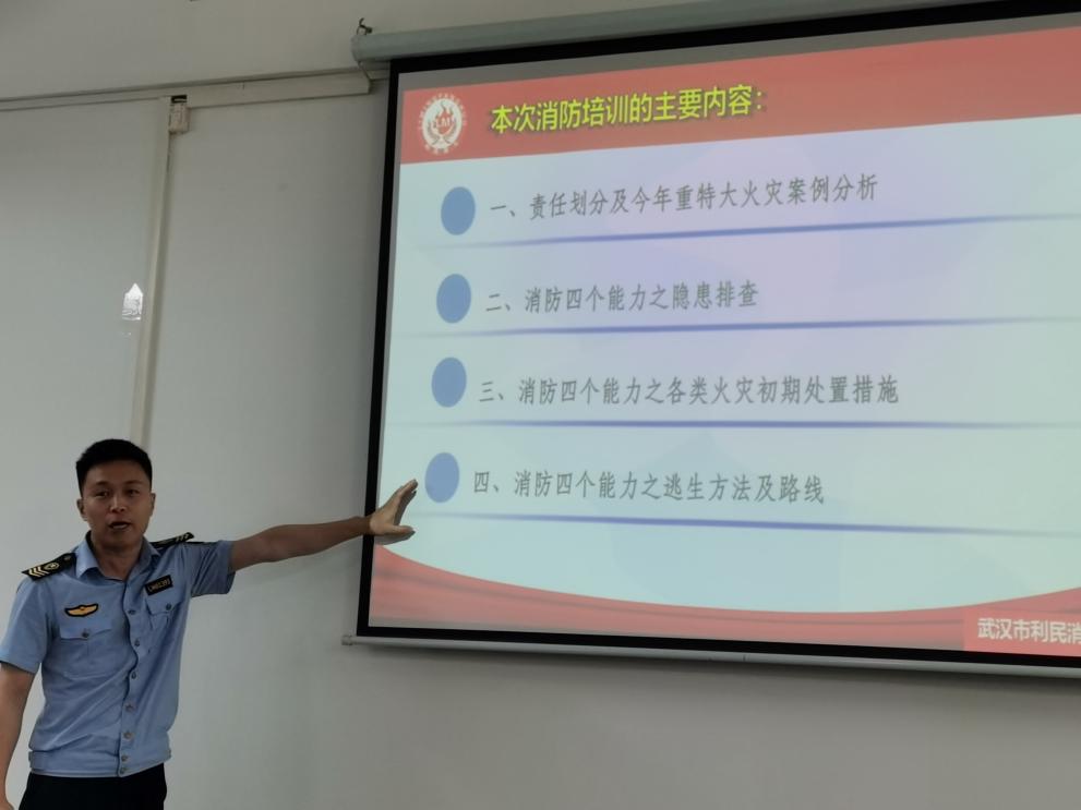 本网讯(通讯员 张哲聪 文/图)为切实增强全体教职工的消防安全意识和应急自救能力,筑牢校园安全防线,2025年5月29日工商管理学院在5306教室召开全院教职工大会,专题进行消防安全知识培训。会议由学院党总支书记熊振主持,特邀武汉利民防火中心程龙教官担任主讲,学院全体教职工参加。