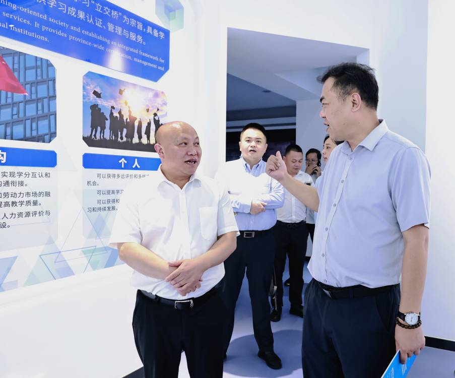 周永彪一行走访考察了我校湖北终身教育馆、社区教育学院,详细了解了我校在终身教育和社区教育方面的发展成效。双方围绕产教融合、校企合作、数字化转型等议题展开深入探讨,并初步达成合作意向。