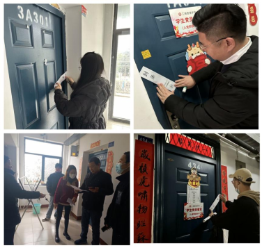 1月11日,学院全体辅导员老师深入寝室,对学生是否离校、门窗是否关好、封条有无张贴等安全重点仔细排查,避免安全隐患。考虑到假期个别寝室的维修需求,相关辅导员及时通知同学们保管好个人物品,做好防尘防灰保护;走访寝室,与维修人员一起核实学生寝室物品,并详细沟通维修细节和施工周期,确保假期的寝室安全。