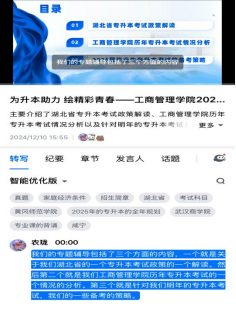 为帮助学生更好地了解专升本政策,提供专升本考试的科学指导,明确学习方向,实现学历提升的梦想,12月10日,学院线上线下同步开展“为升本助力,绘精彩青春”2025届毕业生专题辅导,专题辅导主要内容包括湖北省专升本考试政策解读、工商管理学院历年专升本考试情况分析、2025届毕业生专升本考试的备考策略,并针对同学们关心的问题进行在线答疑。